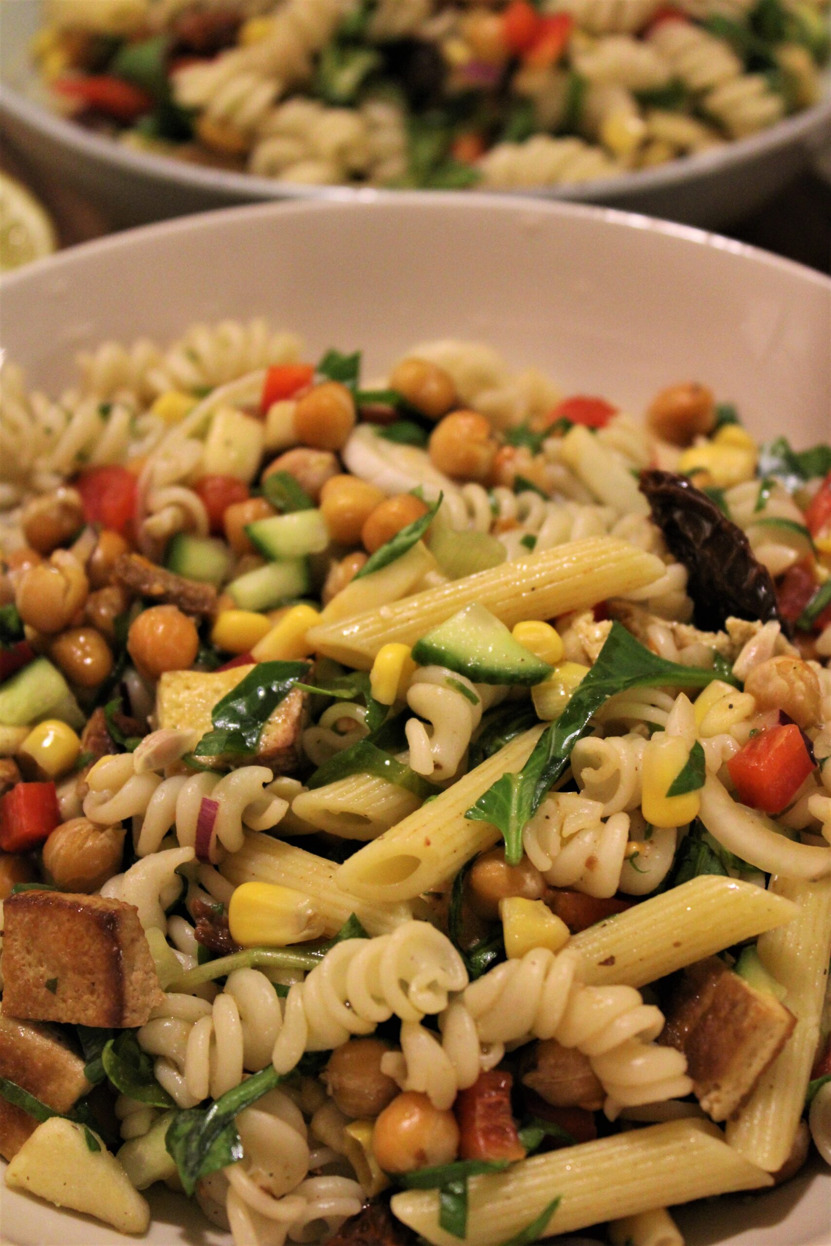 - Majd mikor kihűlt a tészta, a tofu és a csicseri is, keverjük hozzá a zöldségekhez.